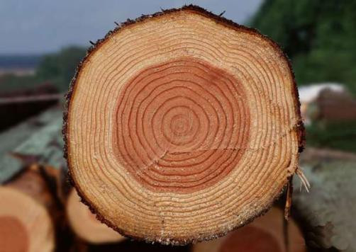 说到这里,还没涉及到“红色”,从外形看,无论树干还是枝叶,都和“红”不沾边啊!“朱”怎么就代表红色了呢?你看看砍伐下来的树木横截面(图2)就知道了,“木心”是红色的,也就说砍倒树木可见红色。