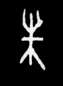 “朱”的金文(图3)在甲骨文的基础上又多了一横,表示把树冠和树根都去掉,只留树干部分,这就初具今天“朱”字的雏形了。